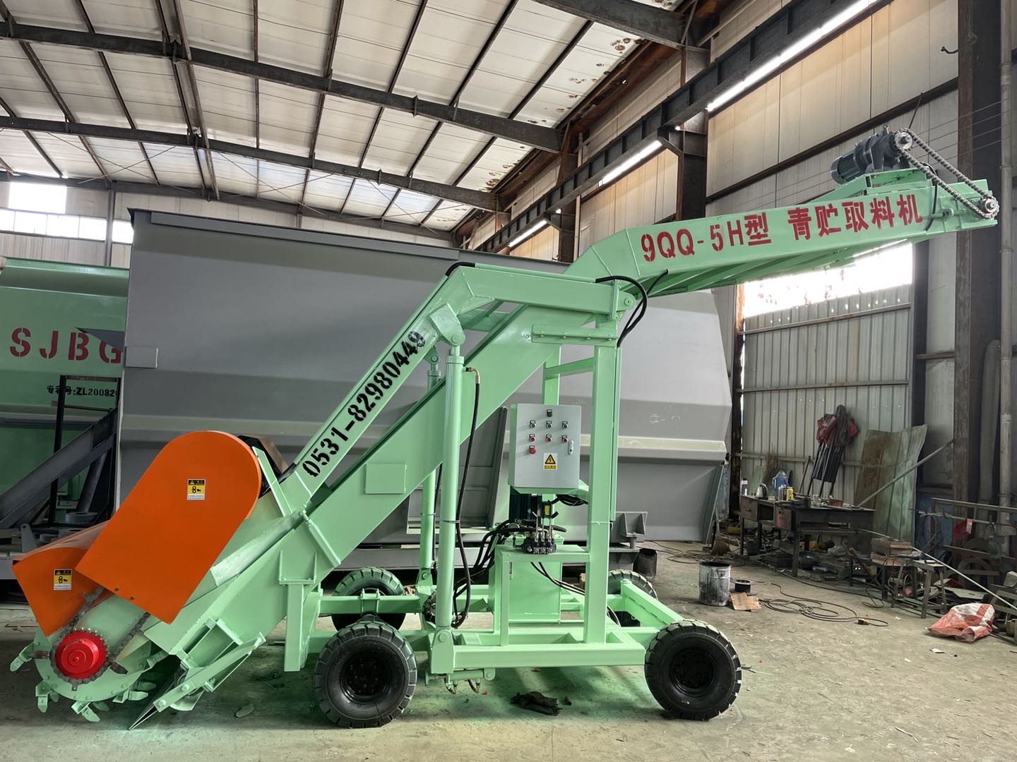 我公司生產(chǎn)的青貯飼料取料機(jī)整體采用全鋼質(zhì)結(jié)構(gòu),穩(wěn)固耐用,加裝橫向移動(dòng)裝置后生產(chǎn)效率更高。
